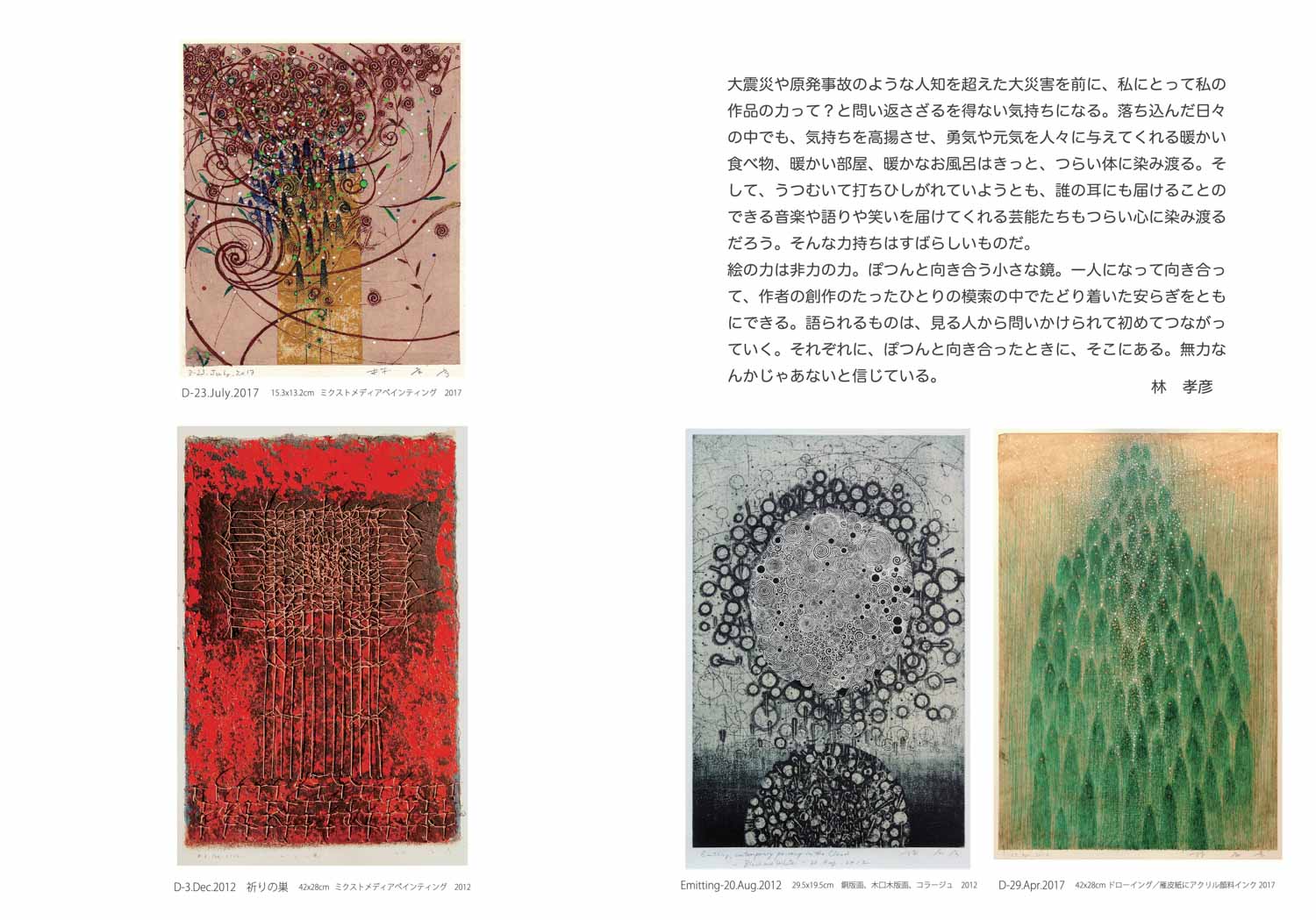 出 品:ミクストメディア、ドローイング、ガラス絵、銅版画