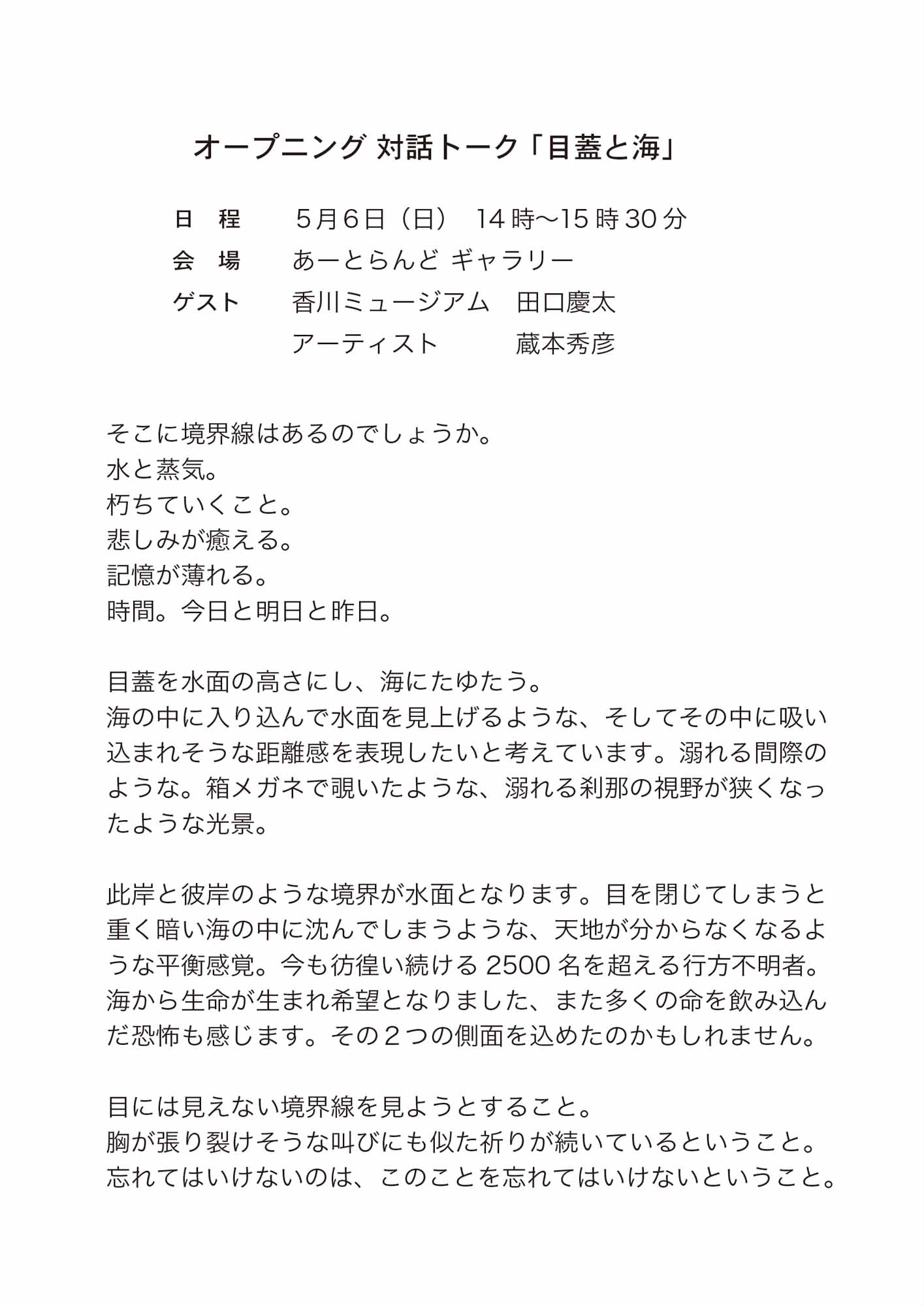 オープニング 対話トーク 「目蓋と海」