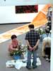 この日は丁度、テレビの取材で花を活けられることになっていましたので、午後からカサブランカのいけ花が始まりました。高橋章さんが助手になって、中川幸夫さんのいけ花が絵画ギャラリーで展開され、ぴーんと張りつめた時間が流れました。関係者以外はいけ花の邪魔になるのでエントランスから様子を伺いました。