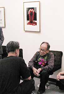 このような下地をこしらえていたところで、中川幸夫さんが中川幸夫事務所の新居義久(写真家)さんと高橋章(写真家)さんに案内されて下見に来られたというわけです。勿論このような並べ方をしているなどとは誰にも、勿論作家にもお話はしておりませんので、画廊の隠し味(と、私はよんでいますが)は知る由がありません。