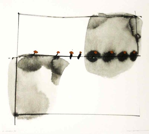 墨絵やモノタイプの場合、手と頭の駆けっこかのように速やかに手を動かす、それは想念やイメージに追い付かれないため。しかし油彩は、時間をかけて仕上げていくのに適し、作品を己の美学に最大限に近づけることが出来る。いわばライブ録音に対してスタジオ録音のようなものだ。宿命的に、作品は出会えた媒材の必然性に導かれた結果でしかない。油彩を描く時、私は常に気にするのは、空間的、時間的、心情的『間』ということだ。筆致の一つ一つに、この『間』という意識を込めて塗り重ねていく。思えば人生も生と死の『間』(ここは「あいだ」と読む)なのだ。最近の作品はもはや目を休ませる場所、のようなものに変わった。中国の「無」、インドの「空」、そして西洋の「有」、、、世界の捉え方は多岐多様だが、しっくりくるのは「無」や「空」。所詮東洋人なのだろう、天才的創造よりも、次第に達観や悟性の深さにこころが惹かれて行く。そしてそれぞれのDNAの極限性、異文化の薫陶と影響、、、これらを一体どう作品に結実するか、私自身それを見てみたい。 文:周 豪 2012年の当画廊アーティストカタログより抜粋